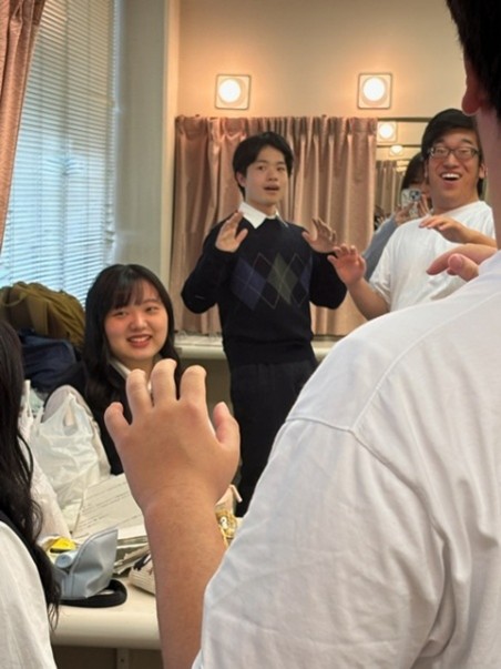 卒業式の場面を完成させるのに苦労しました。「一同礼」で全員のお辞儀をきれいにそろえることは意外に難しく、何度も練習しました。本番が上手くいってよかったと思います。式の中で親への感謝を手紙にして一人一人が読んでいくシーンがあったのですが、その手紙の内容は役者が自分で考えることになっていて、それにも苦労しました。自分なりに親への感謝を表現できたと思います。