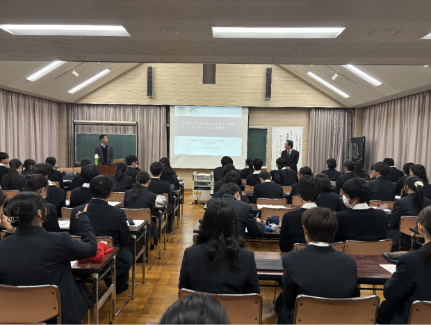 11月17日、京都大学大学院 アジア・アフリカ地域研究研究科 原田英典准教授をお迎えし、1年生普通科B類型・文理探究科対象に、大学教員ビジット授業を開催しました。