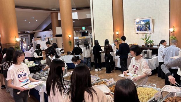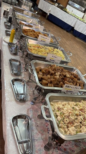 夕食はホテルのビュッフェで、好きな料理を選びながら友達と楽しそうに過ごす姿が見られました。
