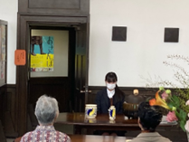 生徒達は普段学校の和室で田谷宗常先生にご指導いただき、裏千家のお点前の稽古をしています。校外の建物での立礼式の点茶という初めてのことに不安も感じていましたが、当日は多くの方がお越しくださって不安も吹き飛ぶ盛況ぶりでした。一般のお客様の前での初めてのお点前は緊張して手が震えたりもしましたが、稽古の通りの所作もできて大変良い経験になりました。参加くださった一般のお客様から