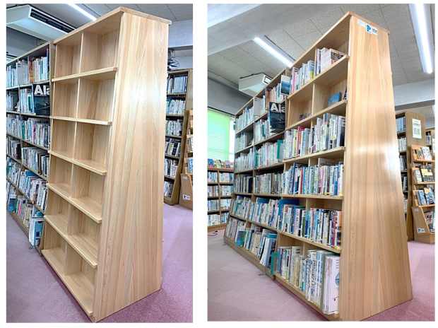 木材の温かみのある書架になり、図書館の雰囲気もより一層明るくなりました。